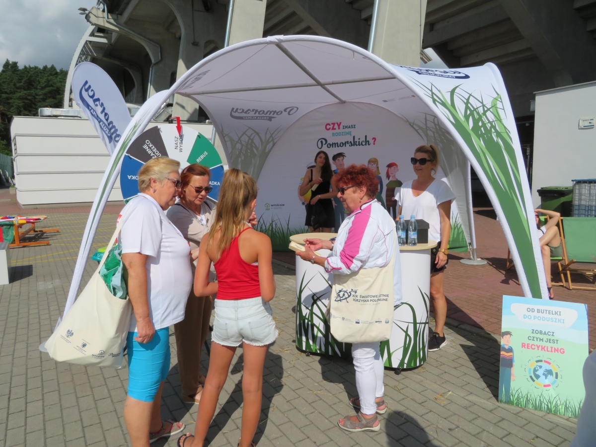 Spotykaliśmy się też z mieszkańcami naszego województwa i turystami przy okazji różnych imprez plenerowych. Specjalne stoisko „Rodziny Pomorskich” składało się ze strefy informacji, gier i zabaw oraz odpoczynku. W trochę luźniejszej atmosferze rozmawialiśmy o środowisku, opowiadaliśmy o tym, jak można zmienić zachowania, by chronić Ziemię, odpowiadaliśmy na pytania, udzielaliśmy informacji. Odwiedziliśmy w ten sposób 24 miejscowości. W spotkaniach udział wzięło około 2 500 uczestników, każdy mógł zagrać w gry, rozwiązać zagadkę lub porozmawiać z edukatorem.