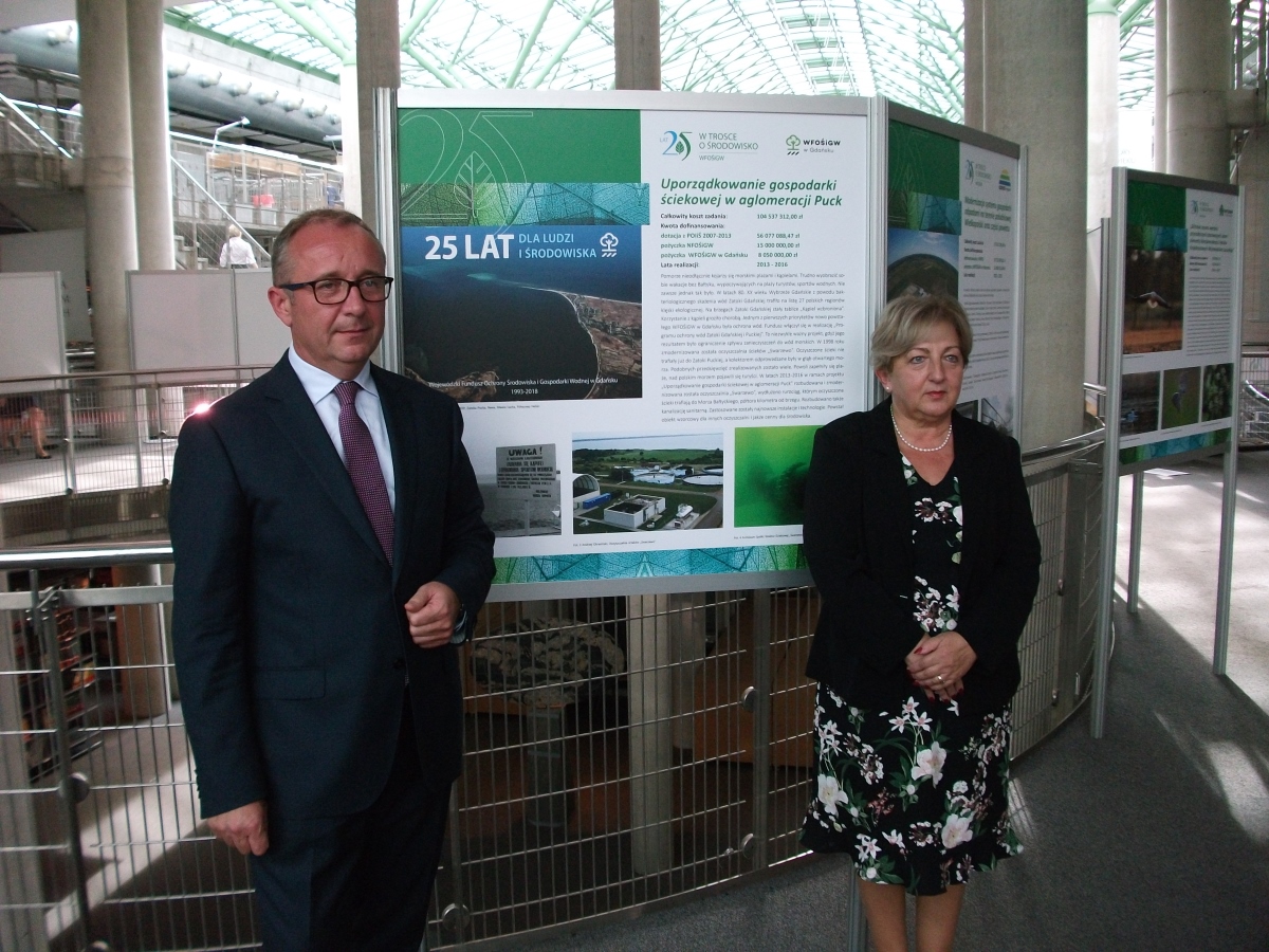 Otwarta została wystawa fotograficzna przedstawiająca najciekawsze projekty realizowane w ostatnim ćwierćwieczu przez poszczególne Wojewódzkie Fundusze Ochrony Środowiska i Gospodarki Wodnej. WFOŚiGW w Gdańsku zaprezentował projekt „Uporządkowanie gospodarki ściekowej w aglomeracji Puck”. Poprzez to przedsięwzięcie chcieliśmy pokazać, że kiedyś plaże były zamknięte, nie można było się kąpać, a dzięki inwestycjom dofinansowanym ze środków naszego Funduszu ograniczony został spływ zanieczyszczeń do wód morskich. Zapełniły się plaże, nad polskim morzem pojawili się turyści i wczasowicze. Teraz mamy zupełnie inną rzeczywistość niż kilkadziesiąt lat temu – powiedział prezes WFOŚiGW w Gdańsku Maciej Kazienko.