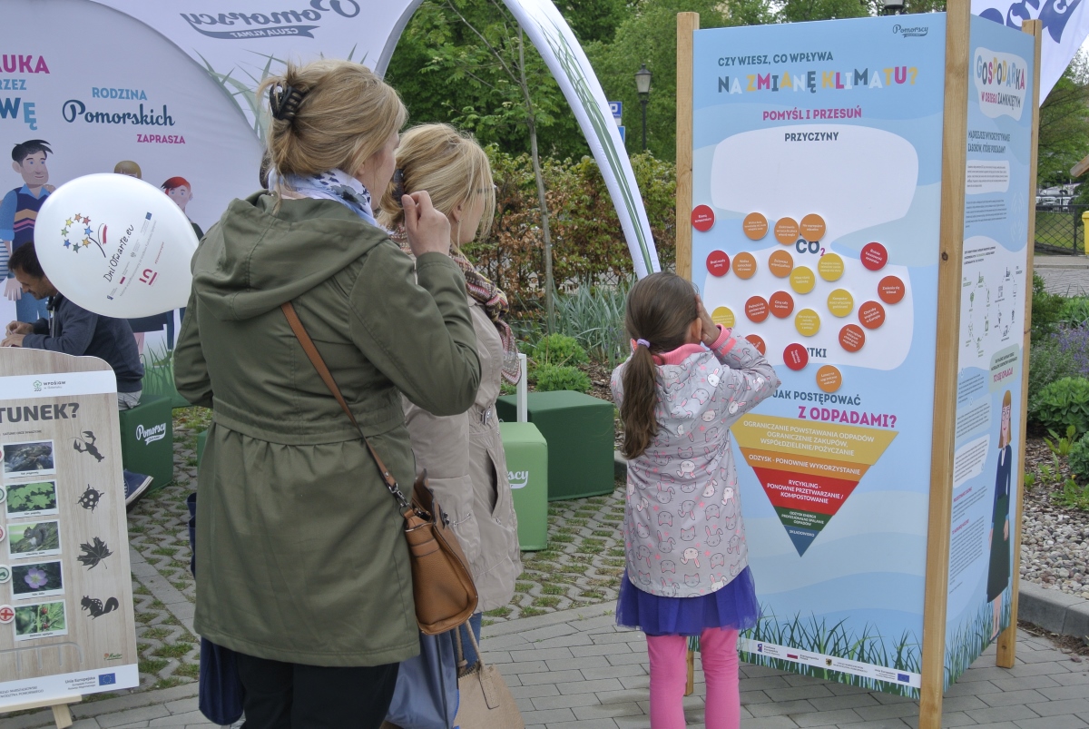 Była także Rodzina Pomorskich! To bohaterowie kampanii prowadzonej przez pracowników Wojewódzkiego Funduszu Ochrony Środowiska i Gospodarki Wodnej w Gdańsku. Pomorscy namawiają do zmiany nawyków i wprowadzania w życie ekologicznych zasad. Uświadamiają, że nasze decyzje i zachowania mają wpływ na stan środowiska. Podczas Dni Otwartych można było wspólnie z Rodziną Pomorskich zagrać w grę planszową, ułożyć puzzle i rozwiązać test ekologiczny. Interesujemy się ekologią w kontekście życia domowego. Nigdy wcześniej tu nie byliśmy, jesteśmy po raz pierwszy i bardzo nam się podoba. Dużo dowiedzieliśmy się o ptakach, pani edukatorka bardzo ciekawie o nich opowiadała. Takie zajęcia powinny być prowadzone w szkołach. Taka wiedza to rewelacja – mówili państwo Jola i Darek. Wtórowała im pani Magdalena. Warto było tu przyjść! Oderwać się od komputera, telefonu. Dużo się dowiedziałam, na przykład o segregacji odpadów. Edukacja w formie zabawy to bardzo dobry pomysł. Popieram!