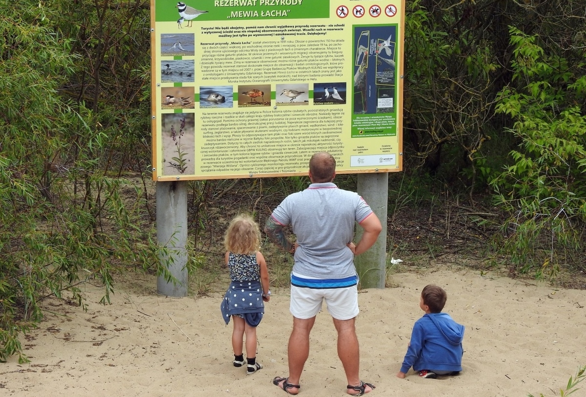 W ramach zadania „Podzielmy się plażą” prowadzona była edukacja ekologiczna w rezerwatach Mewia Łacha i Ptasi Raj. Rezerwaty te chronią cenne dla ptaków miejsca lęgów, żerowania i odpoczynku. Edukacja prowadzona była w dwóch miejscach, w tym na platformie obserwacyjnej w rezerwacie Mewia Łacha, której budowa dofinasowana została w 2015 roku ze środków WFOŚiGW w Gdańsku. W ciągu dwóch miesięcy edukatorzy rozmawiali z ponad 6 000 osób – mieszkańcami i turystami. Przez lunety i lornetki pokazywali ptaki, a w Mewiej Łasze także odpoczywające foki. Udzielali informacji na temat ptaków, które można zaobserwować na terenie danego rezerwatu oraz czyhających na nich zagrożeń. Rośnie liczba turystów, którzy preferują taką formę edukacji. Obserwujemy spory entuzjazm wśród zwiedzających – mówi Magda Dziermańska. Ważne jest też to, że takie działania pozwalają na zapoznanie się z walorami rezerwatów, a jednocześnie powstrzymują ludzi przed eksploracją tych bardzo wrażliwych obszarów.
