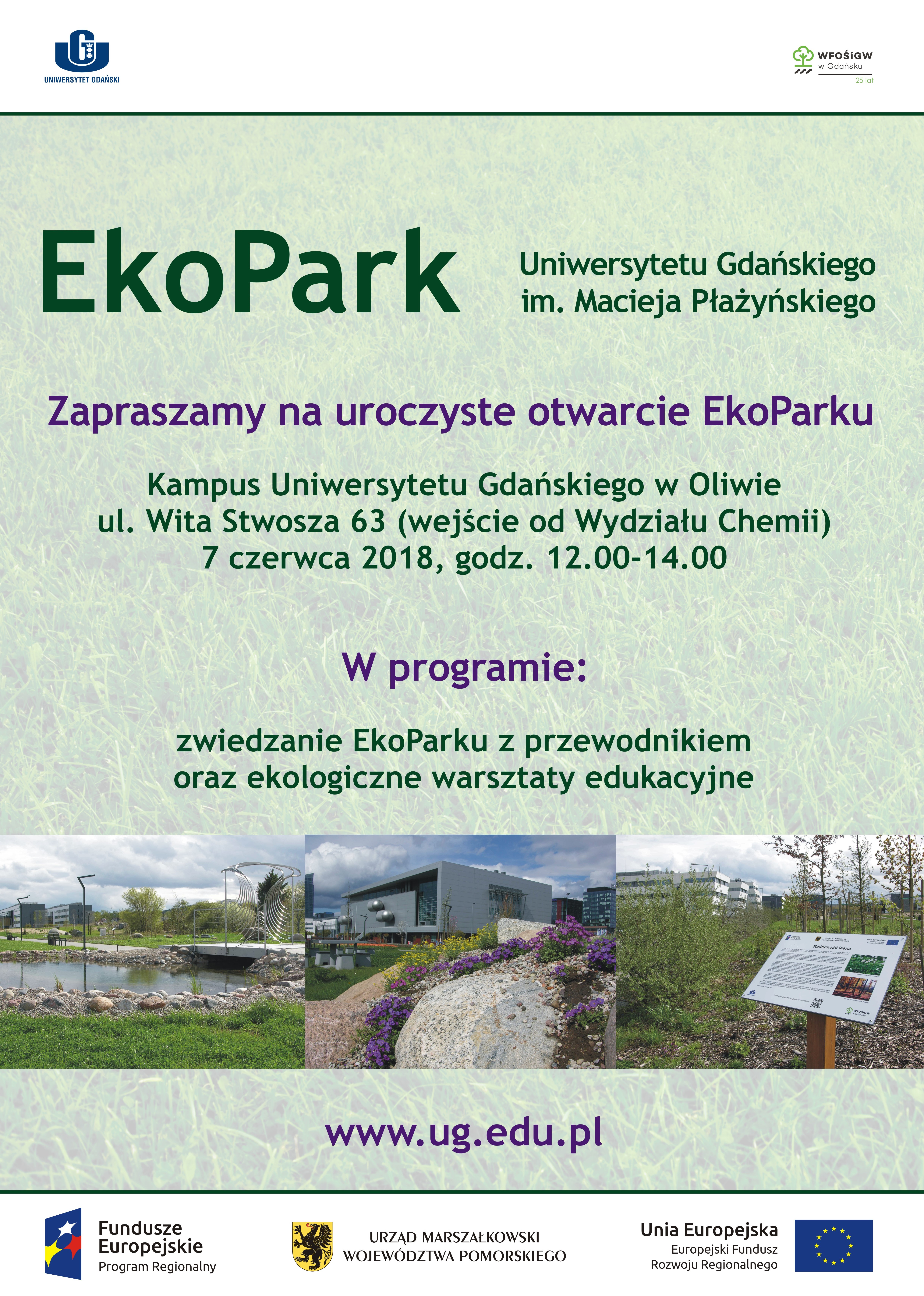 W dniu 7 czerwca br., w godz. 12.00-14.00, nastąpi uroczyste otwarcie EkoParku Uniwersytetu Gdańskiego im. Macieja Płażyńskiego. EduPark znajduje się na terenie Bałtyckiego Kampusu UG w Oliwie.