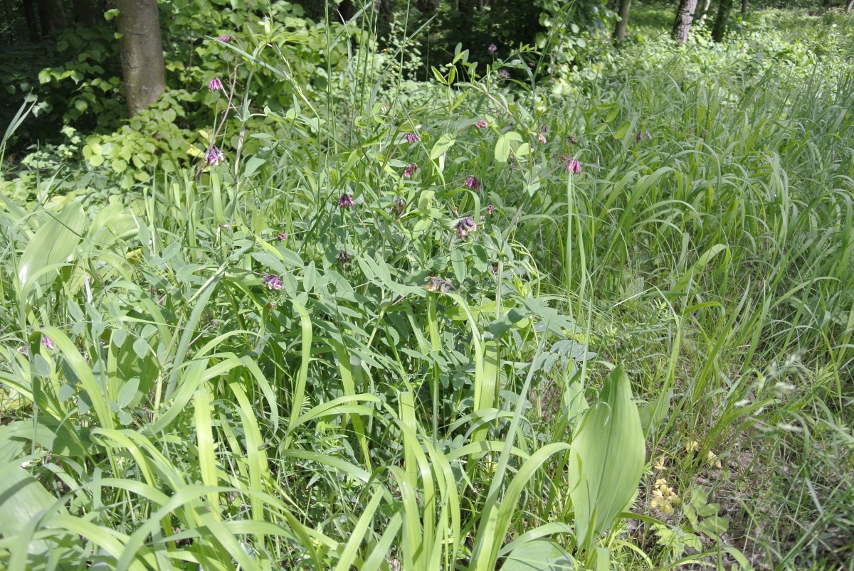 Najwięcej groszku wielkoprzylistkowego prof. Jacek Herbich zaobserwował na przełomie maja i czerwca. Później, na skutek naturalnego obumierania osobników, liczba ta zmniejsza się. Groszek najlepsze warunki ma pod osłoną przerzedzonego drzewostanu. Na stanowiskach na poboczu szosy bardzo obficie rozwija się wyka ptasia i podagrycznik. Oba są w stanie całkowicie przykryć groszek, a w bieżącym roku okazało się, że pokładający się pod wpływem suszy podagrycznik całkowicie przykrywał i zagłuszał groszek. Podagrycznik rosnący w głębi lasu stanowi także istotne zagrożenie dla wprowadzanego tam groszku – tłumaczy Jacek Herbich.